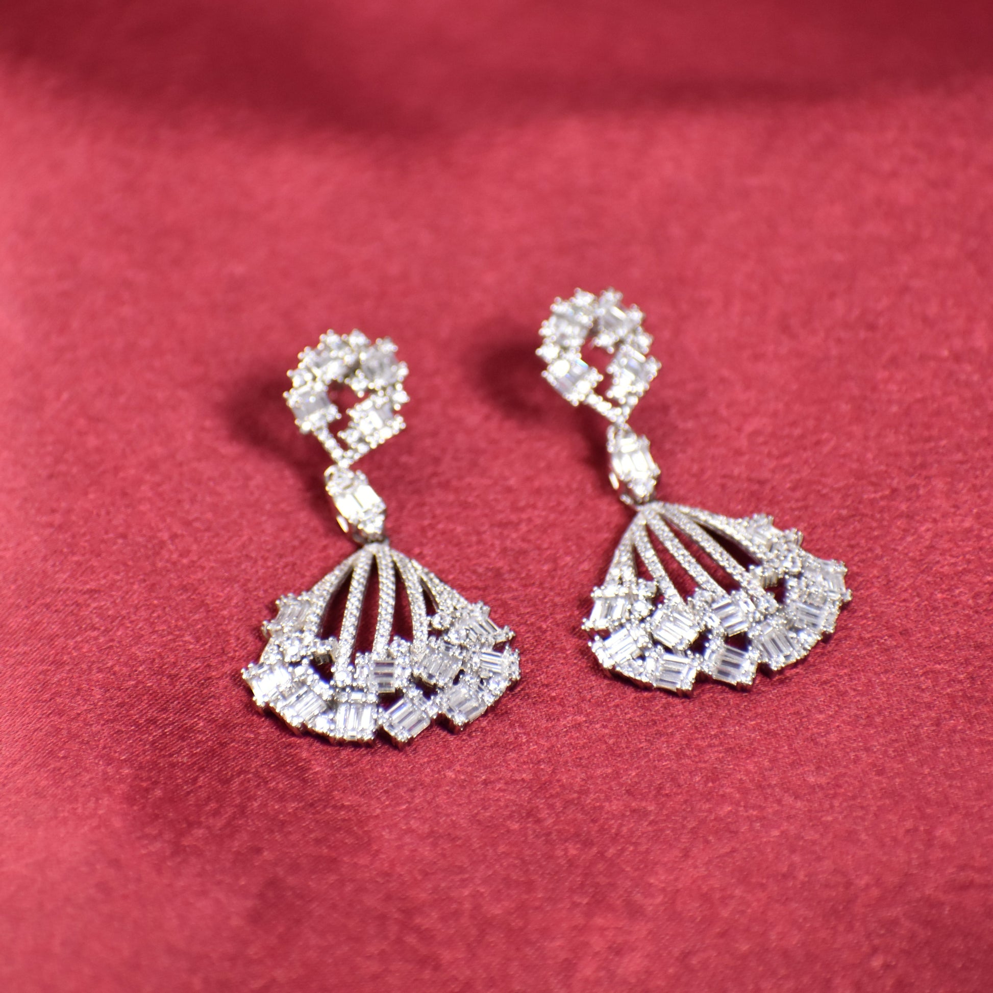 Fan-Shaped Design: Elegant drop earrings adorned with sparkling cubic zirconia for maximum brilliance.